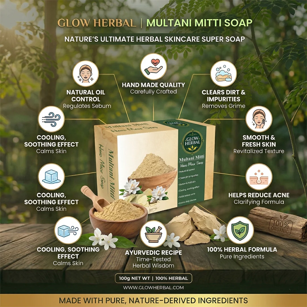 Crafted in Roorkee using traditional cold-process saponification, our Multani Mitti Herbal Soap retains all the natural glycerin and active minerals that commercial soaps strip away. Enriched with Fuller's Earth, each bar is cured for a minimum of 4 weeks for a long-lasting, silky-smooth lather.