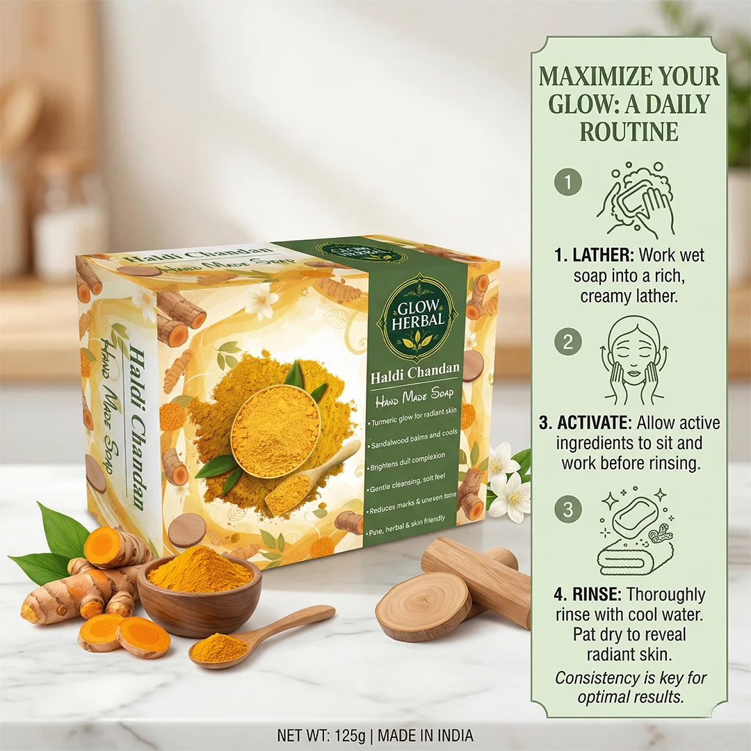 A timeless Ayurvedic pairing — raw Turmeric (Haldi) and creamy Sandalwood (Chandan) — brought together in a luxurious cold-process soap. This classic formulation brightens skin tone, reduces hyperpigmentation, and imparts a warm, woody fragrance loved by premium spas and wellness boutiques.